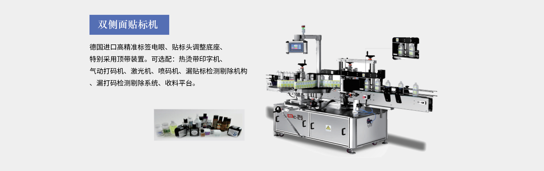 2021-07-25查看詳情本公司生產的口服液貼標機適合細長形圓柱體瓶圓周表面的不干膠標簽自動貼標,口服液瓶等,采用彩色人機界面,離合器設計,使標簽張緊力更加穩定,便于提高貼標精度3、西門子PLC控制,德國、日本光眼,高精度步進,貼標速度可達30米/分鐘,可加裝色帶打碼機、或者熱轉印機??诜嘿N標機多為圓瓶貼標機適用于瓶身長,直徑的產品(玻璃塑料都可以,材質不限),同時可加工粉針劑瓶、采血管、水針劑瓶、眼藥水瓶、圓管等,專門針對...
